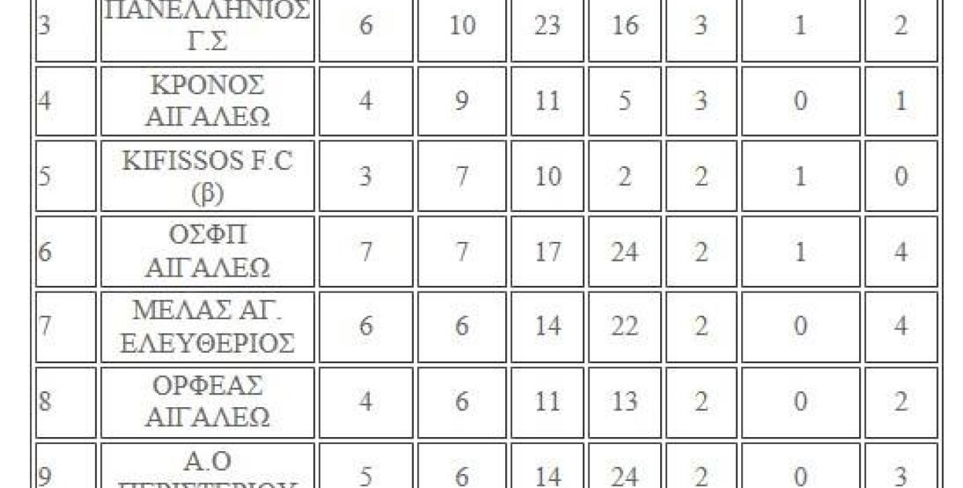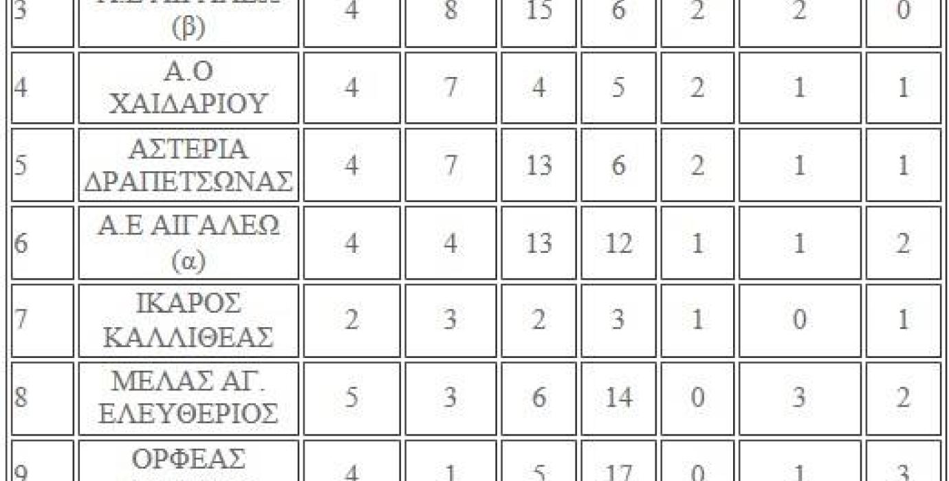 ΒΑΘΜΟΛΟΓΙΕς , ΠΟΔΟΣΦΑΙΡΟ ΜΕΛΑΣ ο Αγιος Ελευθέριος -