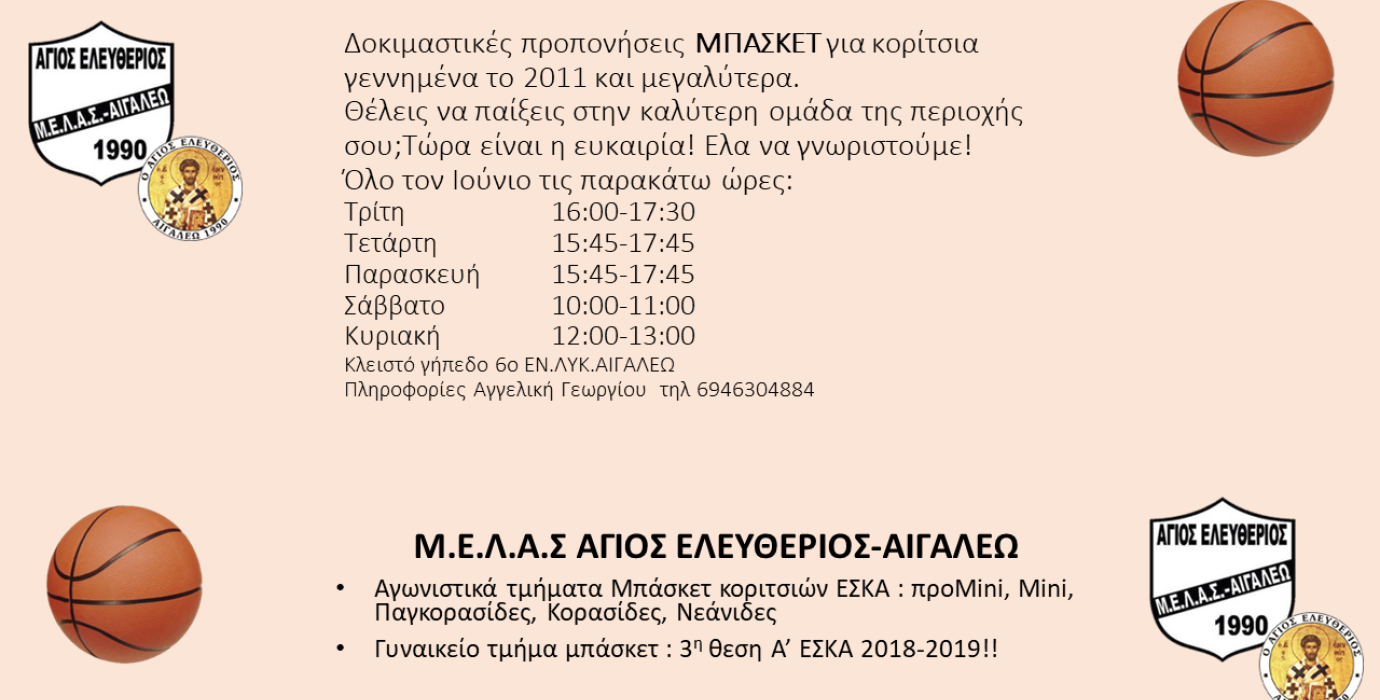 Θέλεις να παίξεις μπάσκετ στη καλύτερη ομάδα της περιοχής σου, στο ΑΙΓΑΛΕΩ. Τώρα είναι η ευκαιρία, έλα να γνωριστούμε.