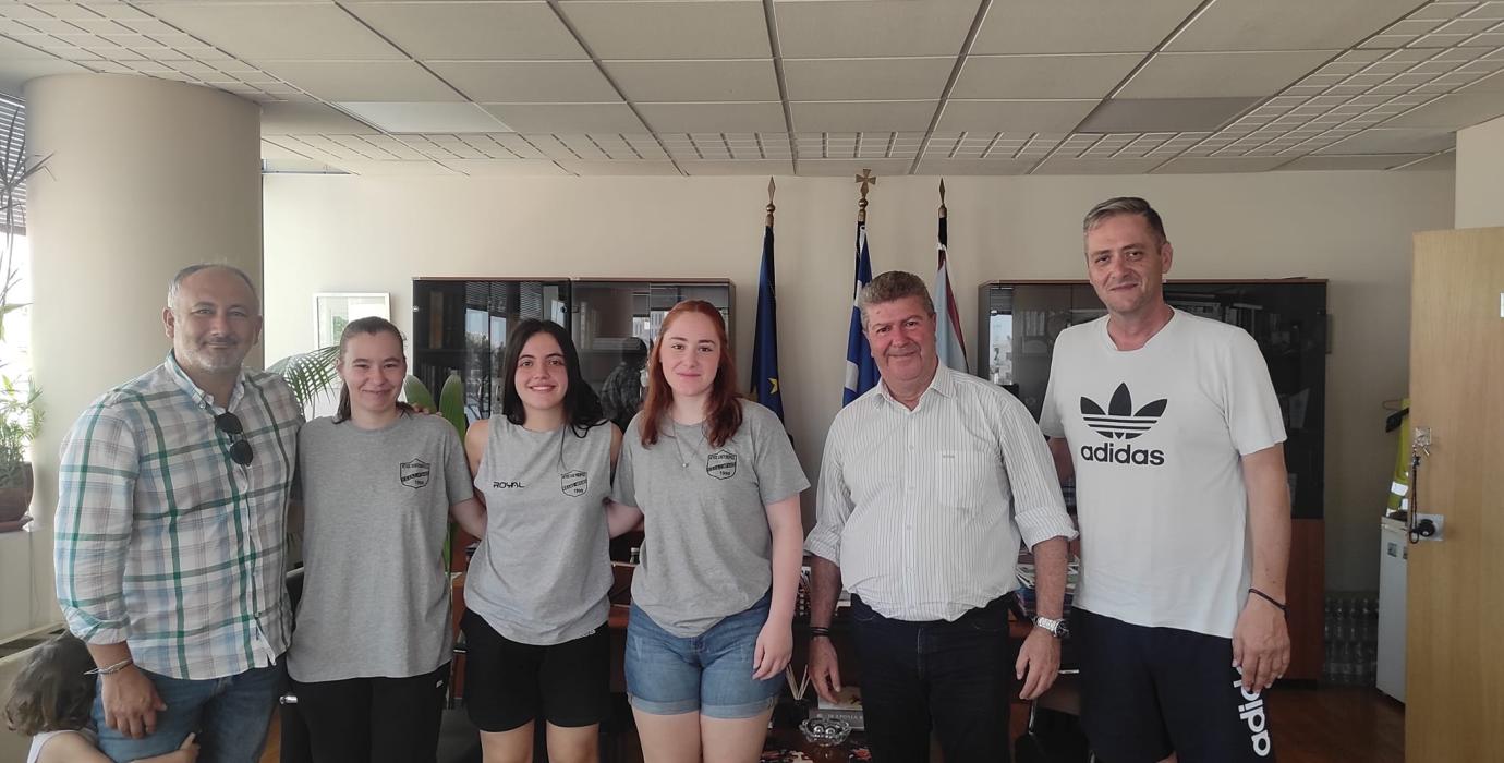 Αντιπροσωπεία Αθλητριών μας με τον Υπεύθυνο Γυναικείου Μπάσκετ Χρήστο Ντίμτσα παρέδωσαν στο Δήμαρχο Αιγάλεω Γ. Γκίκα και Αντιδήμαρχο Ν. Ασημακόπουλο τα συγκεντρωθέντα είδη.