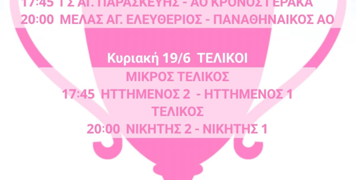 Ο τελικός του 2022 θα πραγματοποιηθεί στο κλειστό Αιγάλεω το Σάββατο και τη Κυριακή 18 & 19 Ιουνίου με αντιπάλους τις ομάδες των Παναθηναικού , ΓΣΑγ. Παρασκευή, Κρόνου Γέρακα & τη δική μας Μ.Ε.Λ.Α.Σ. ΑΓΙΟΣ ΕΛΕΥΘΕΡΙΟΣ.