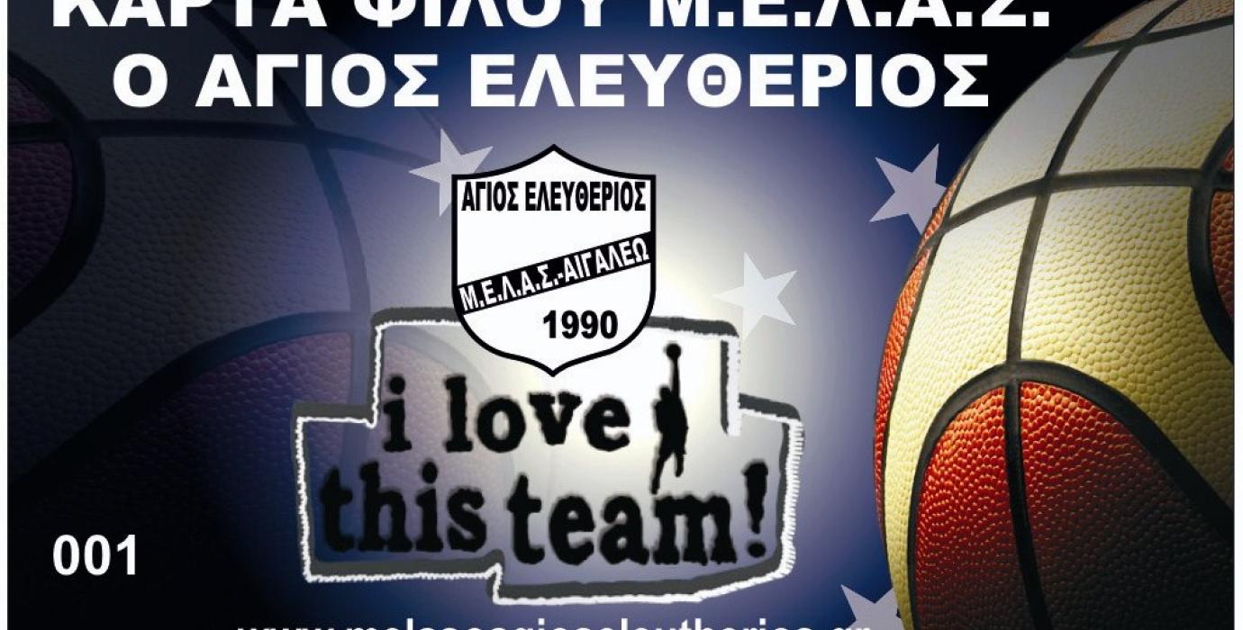 Κυκλοφορούν οι κάρτες φίλων του συλλόγου μας '' ΜΕΛΑΣ ο Άγιος Ελευθέριος '' για τη νέα Αθλητική χρονιά 2012-13. Η Κάρτα έχει και Οικογενειακή ισχύ από εφέτος, με μια κάρτα φέρνετε και το σύντροφό σας, ενώ ισχύει μέχρι και τις 31/8 του επόμενου έτους.