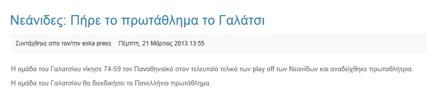 Συγχαρητήρια στο Γαλάτσι που δίκαια κατέκτησε την πρώτη θέση.