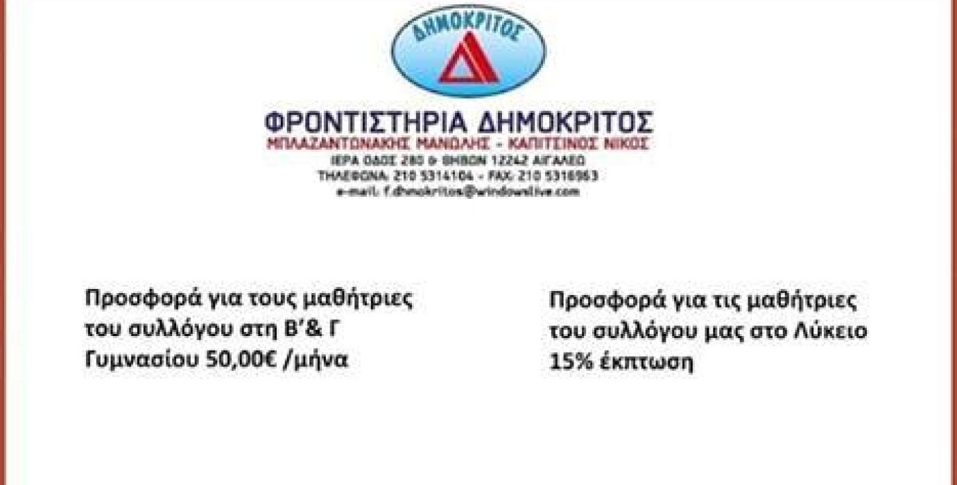 *** Προσφορά των Φροντιστηρίων ΔΗΜΟΚΡΙΤΟΣ *** Σεπτέμβριος 21, 2019 - 06:05 ΠΡΟΣΦΟΡΑ ΓΙΑ ΟΛΑ ΤΑ ΠΑΙΔΙΑ ΤΟΥ ΣΥΛΛΟΓΟΥ ΜΑΣ ΑΠΟ ΤΑ ΦΡΟΝΤΙΣΤΗΡΙΑ ΔΗΜΟΚΡΙΤΟΣ. TAGS: #Σύλλογος Τελευταία Νεα ΚΟΠΗ ΤΗς ΠΙΤΑΣ ΤΟΥ Μ.Ε.Λ.Α.Σ. ο ΑΓΙΟΣ ΕΛΕΥΘΕΡΙΟΣ , Φεβρ 2025 ΚΟΠΗ ΤΗς ΠΙΤΑΣ ΤΟΥ Μ.Ε.Λ.Α.Σ. ο ΑΓΙΟΣ ΕΛΕΥΘΕΡΙΟΣ , Φεβρ 2025 Συμμετέχουμε στη πορεία διαμαρτυρίας για τα Τέμπη Συμμετέχουμε στη πορεία διαμαρτυρίας για τα Τέμπη Πρόσκληση Γενικής Συνέλευσης του Μ.Ε.Λ.Α.Σ. ο Άγιος Ελευθέριος Πρόσκληση Γενικής Συνέλευσης του Μ.Ε.Λ.Α.Σ. ο Άγιος Ελευθέριος Κοπή πίτας 2025, του Μ.Ε.Λ.Α.Σ. Άγιος Ελευθέριος Κοπή πίτας 2025, του Μ.Ε.Λ.Α.Σ. Άγιος Ελευθέριος Promitheas Park Tournaments "Ανδρέας Μελιγδής" Promitheas Park Tournaments "Ανδρέας Μελιγδής" Χρόνια Πολλά, Καλά Χριστούγεννα & Καλή Πρωτοχρονιά Χρόνια Πολλά, Καλά Χριστούγεννα & Καλή Πρωτοχρονιά Πρωτάθλημα Γυναικών Β΄ Κατηγορίας ΕΣΚΑ, 12η Αγωνιστική Πρωτάθλημα Γυναικών Β΄ Κατηγορίας ΕΣΚΑ, 12η Αγωνιστική Πρωτάθλημα Νεανίδων Β΄ Κατηγορίας ΕΣΚΑ, 12η Αγωνιστική Πρωτάθλημα Νεανίδων Β΄ Κατηγορίας ΕΣΚΑ, 12η Αγωνιστική Πρωτάθλημα Κορασίδων Α΄ Κατηγορίας ΕΣΚΑ, 12η Αγωνιστική Πρωτάθλημα Κορασίδων Α΄ Κατηγορίας ΕΣΚΑ, 12η Αγωνιστική Πρωτάθλημα Γυναικών Β΄ Κατηγορίας ΕΣΚΑ, 11η Αγωνιστική Πρωτάθλημα Γυναικών Β΄ Κατηγορίας ΕΣΚΑ, 11η Αγωνιστική