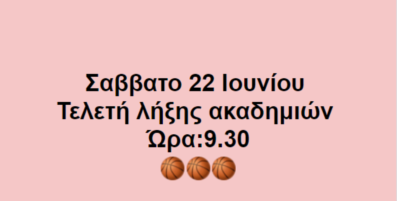 Σάββατο 22 Ιουνίου η Τελετή Λήξης των Ακαδημιών στις 9΄30 πμ.