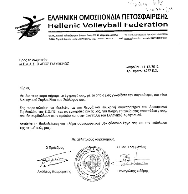 Συγκροτήθηκε εχθές Τετάρτη 21-Νοεμ το νέο ΔΣ του συλλόγου μας, ΜΕΛΑΣ Αγ.Ελευθέριος.