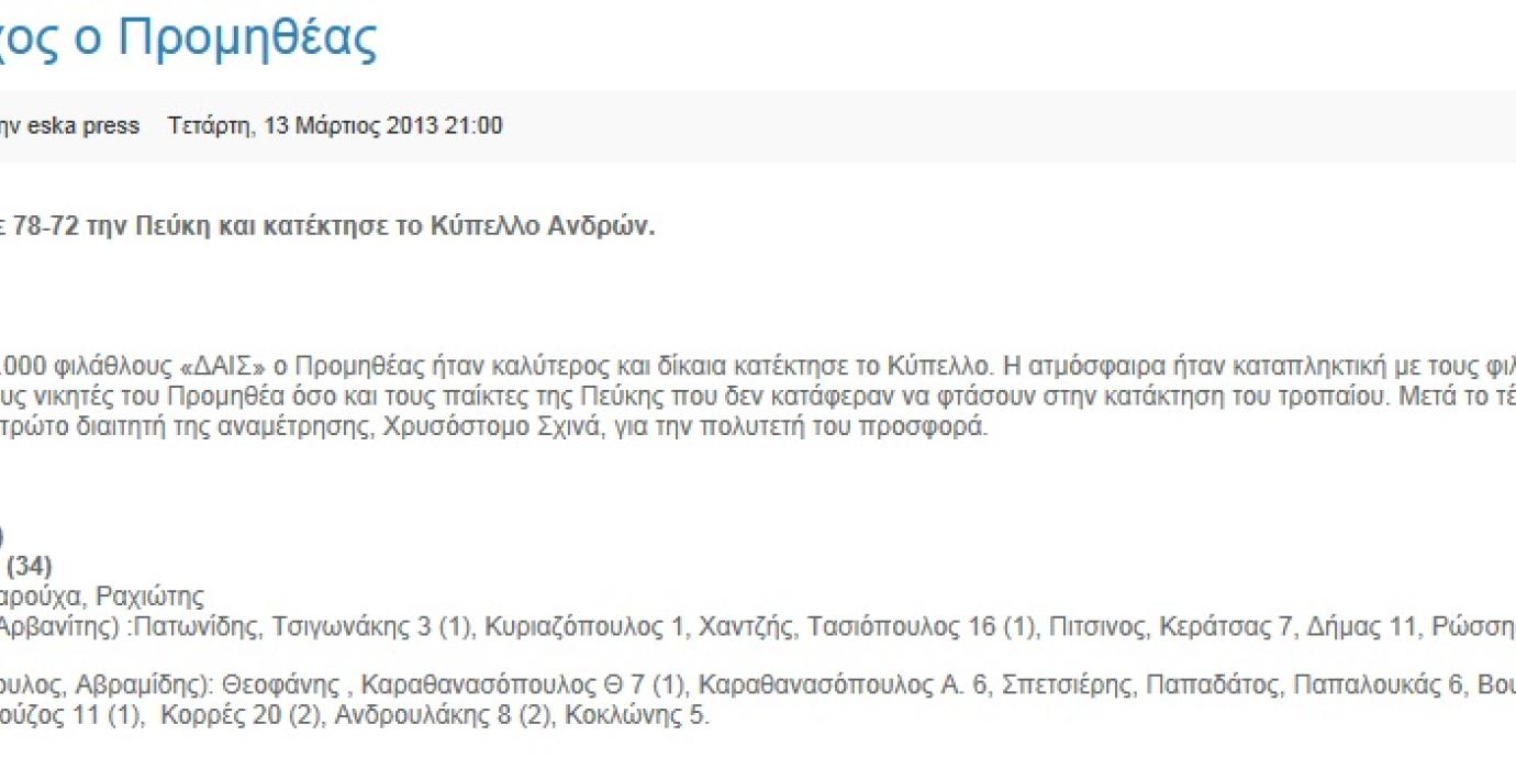 Ο Προμηθέας νίκησε 78-72(34-35) την Πεύκη και κατέκτησε το Κύπελλο Ανδρών.