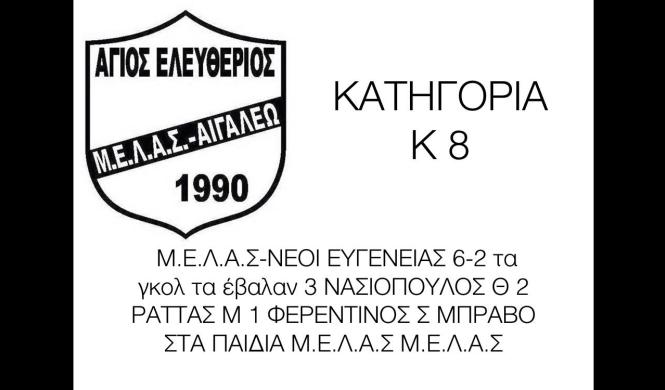 Ενδιαφέροντα παιχνίδια με ένταση & πολλά γκολ, το ΣΚ H Κ8 Μ.Ε.Λ.Α.Σ-ΠΗΓΑΣΟΣ Ν.Κ 1-3, ΜΕ ΦΑΝΤΑΣΤΙΚΟ ΓΚΟΛ ΤΟΥ ΘΕΜΙΣΤΟΚΛΗ ΝΑΣΙΟΠΟΥΛΟΥ. H Κ10 ΜΕΛΑΣ-ΟΣΦΠ (3) ΤΑΥΡΟΥ 0-4. Η...